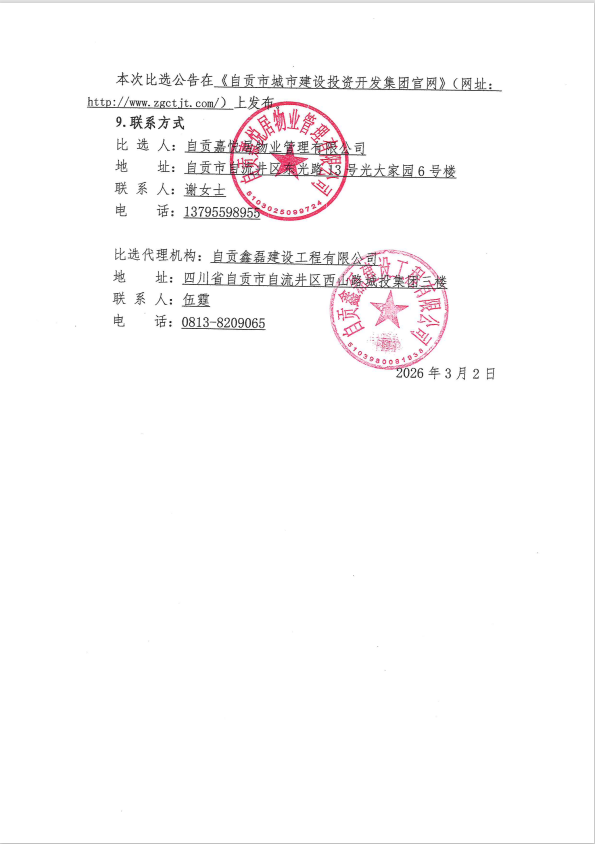 自贡嘉悦居物业管理有限公司劳务外包服务比选比选公告