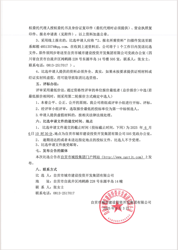 自贡市城市建设投资开发集团有限公司办公用品及后勤物资供应商比选公告