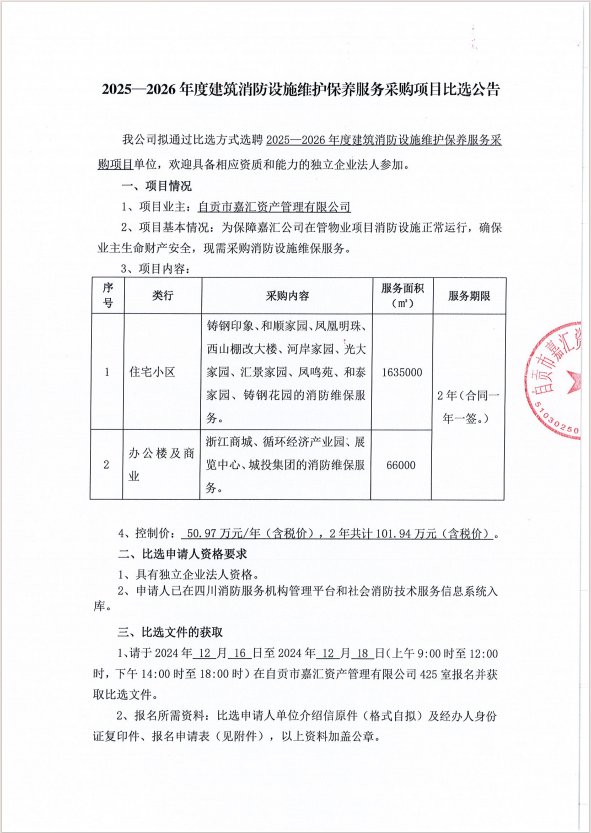 2025-2026年度建筑消防设施维护保养服务采购项目比选公告