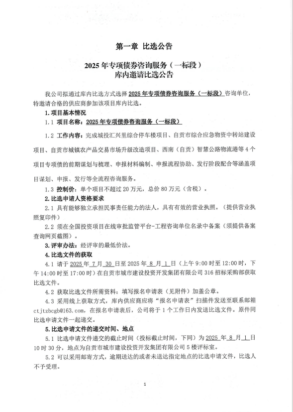 2025年专项债券咨询服务(一标段)库内邀请比选公告