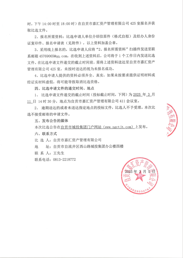 自贡城投-2025年境内债券发行法律服务比选公告