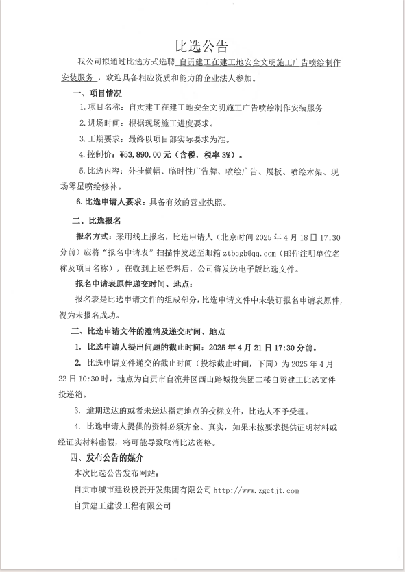 自贡城投安置房小区消防设施维修工程项目(第三次)比选公告