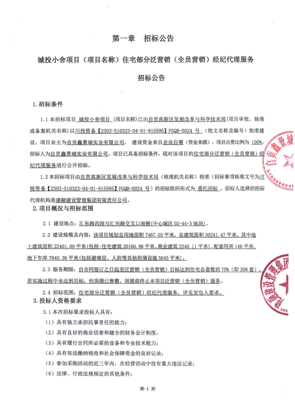 城投小舍项目(项目名称)住宅部分泛营销(全员营销)经纪代理服务招标公告