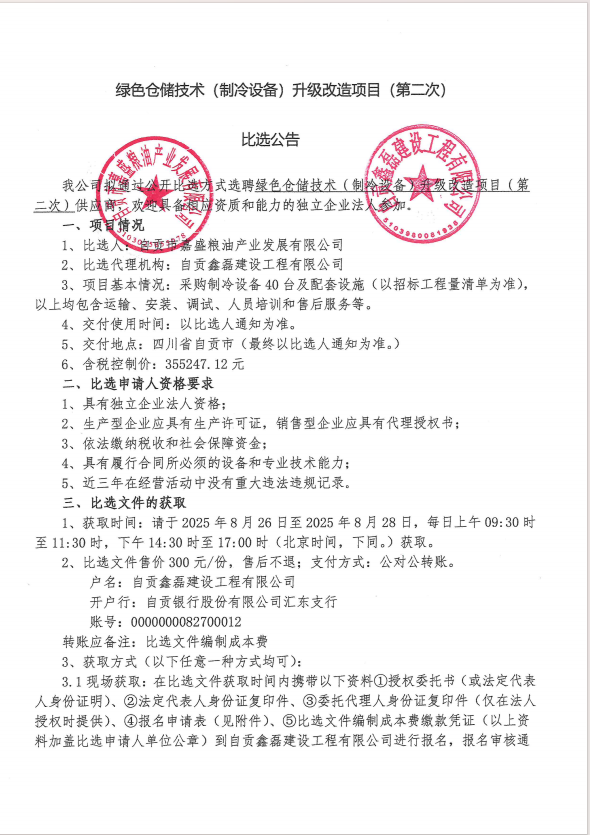 绿色仓储技术(制冷设备)升级改造项目比选公告(第二次)