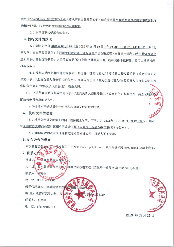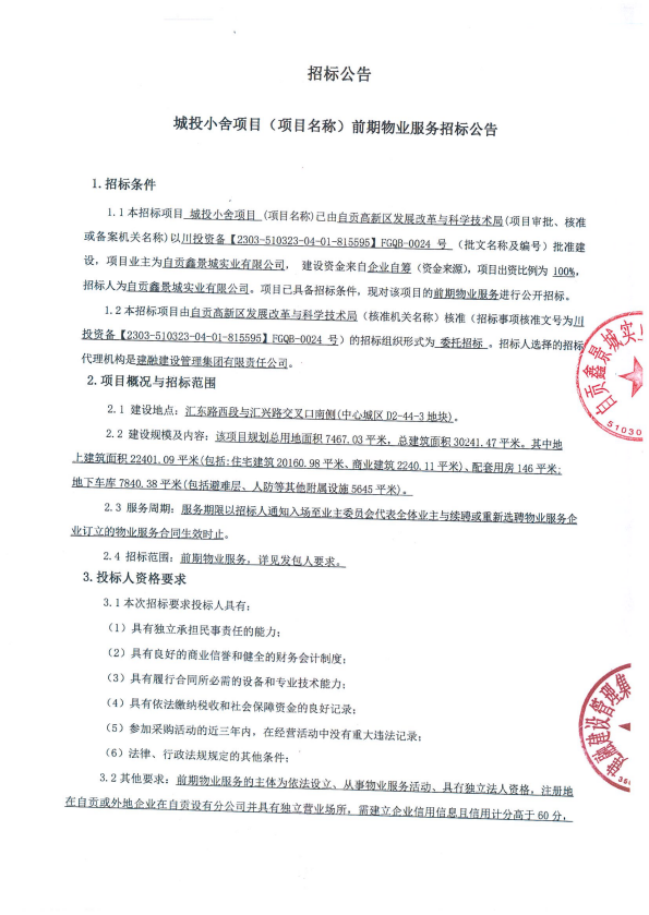 城投小舍项目(项目名称)前期物业服务招标公告