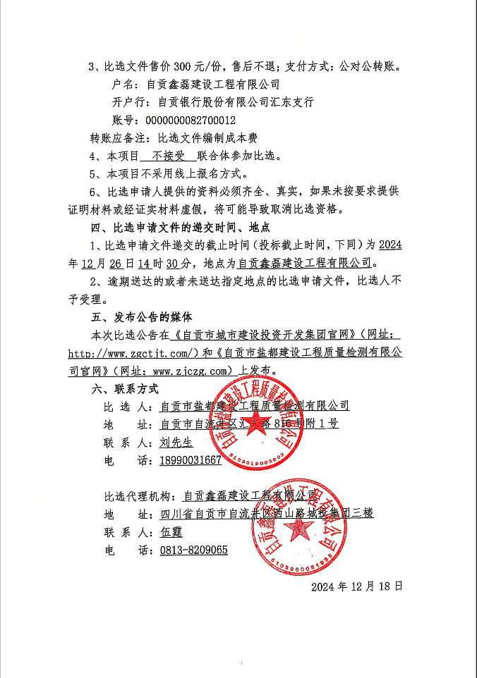 自贡市盐都建设工程质量检测有限公司设备购置项目比选公告