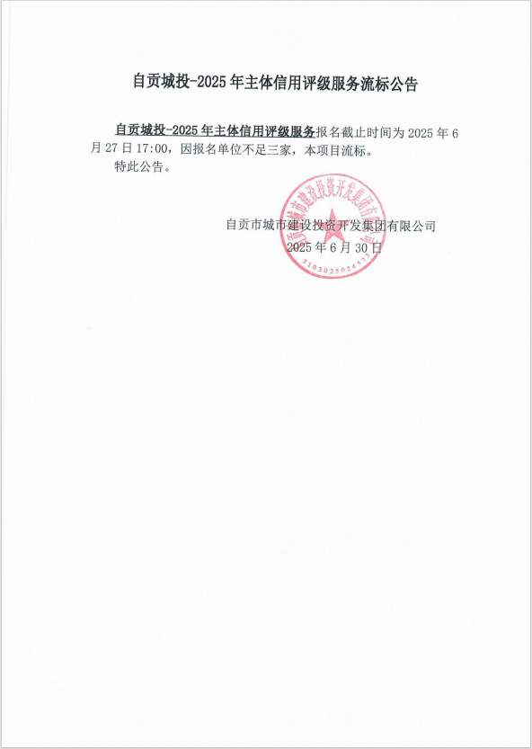 自贡城投-2025年主体信用评级服务(第二次)比选公告
