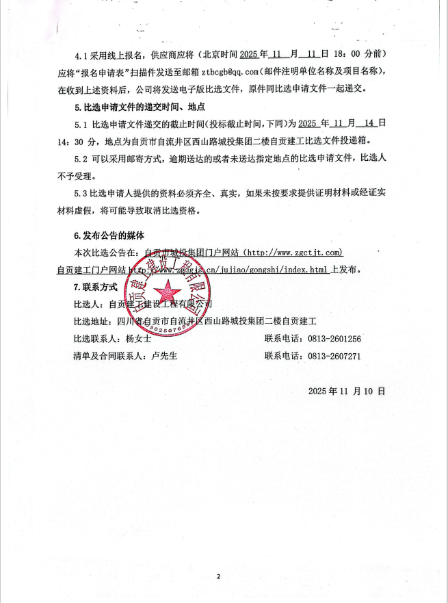自贡建工2025年应急抢险及零星工程库内邀请比选比选公告