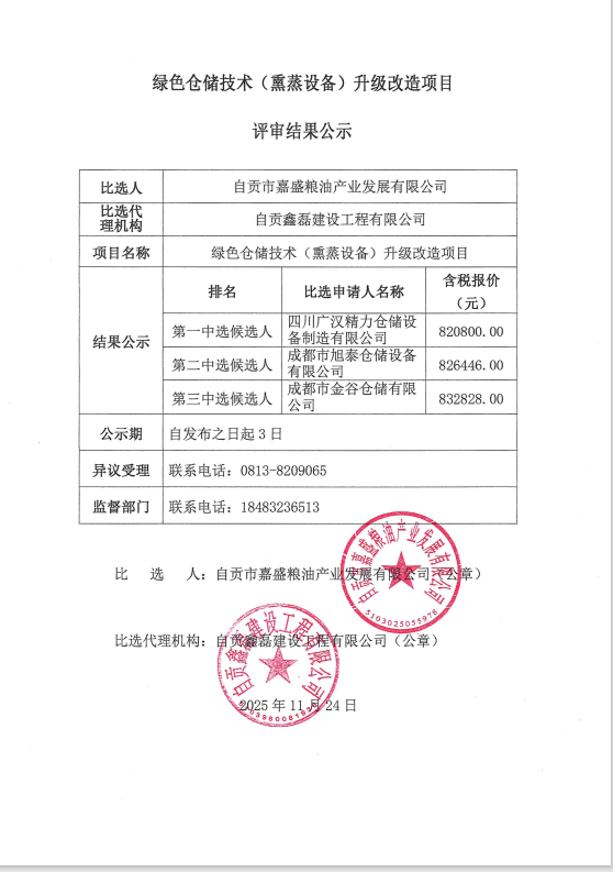绿色仓储技术(熏蒸设备)升级改造项目评审结果公示