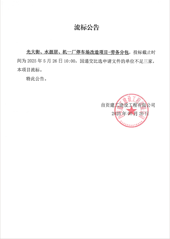 光大街、水涯居、机一厂停车场改造项目-劳务分包流标公告