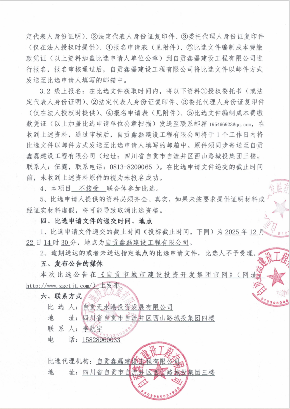 自贡无水港投资发展有限公司笼具钣金采购项目比选公告