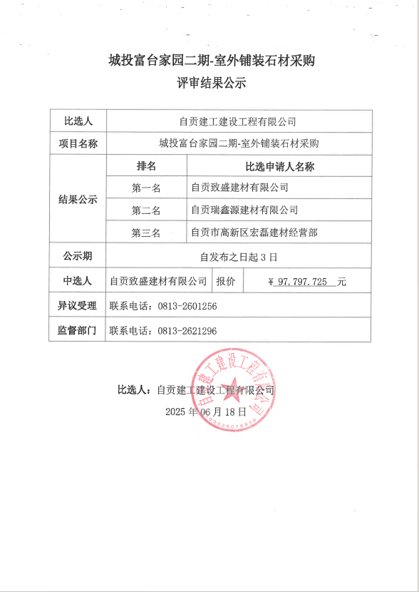 城投富台家园二期-室外辅装石材采购评审结果公示