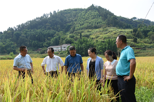 调研组认真听取了嘉盛粮油公司党支部书记吴雪峰对今年订单签订、品种选育、种植面积、产量预测、农户增收以及下一步工作打算等相关情况汇报,深入富顺县李桥镇仔细查看公司核心基地稻谷长势情况,沉甸金黄的谷穗预示着今年基地粮食丰收在望。调研组对公司专用粮基地建设工作给予充分肯定。
