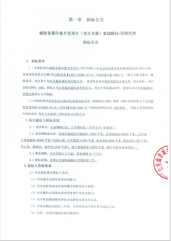 城投釜溪印象开发项目(项目名称)策划顾问/营销代理招标公告