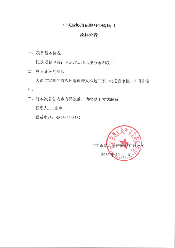 城投富台家园项目(二期)-柴油发单机组采购流标公告