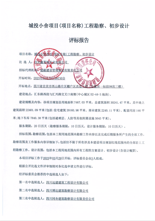 城投小舍项目(项目名称)工程勘察、初步设计评标报告