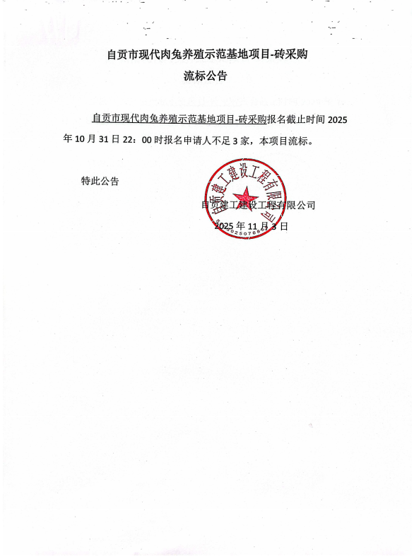 自贡市现代肉兔养殖示范基地项目-砖采购流标公告