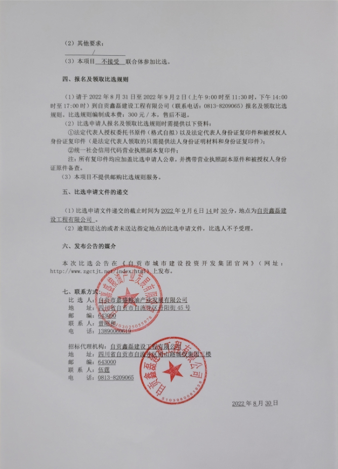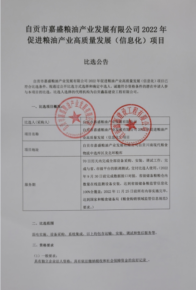 自贡市嘉盛粮油产业发展有限公司从集团公司2022年促进粮油产业高质量发展(信息化)项目比选公告
