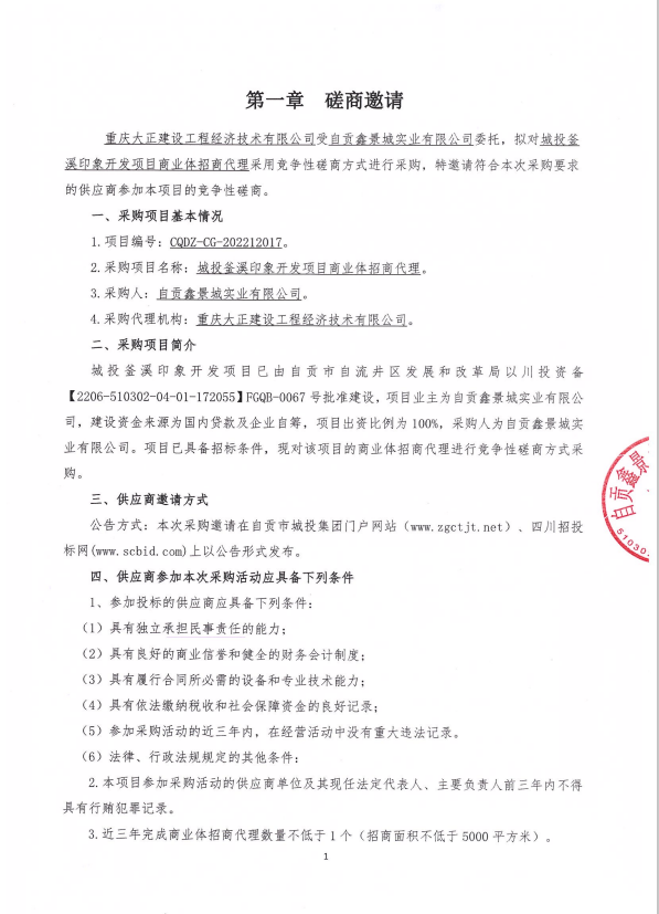 城投釜溪印象开发项目商业体招商代理磋商邀请