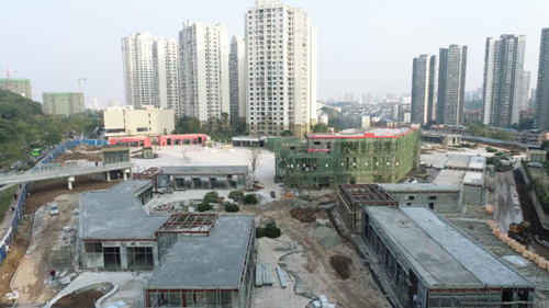 为圆满完成建设任务,自贡建工克服各种困难与不利因素,推进施工进度。在抓抢工期进度的同时,加强项目现场安全文明施工管理,保质保量保安全的情况下全力推动项目的顺利进行。目前,项目进展情况顺利,主体结构已全部建成,总体装饰外墙已完成20%。园区广场、总体室外地面铺装以完成80%,总体绿化已完成30%,预计项目将在2021年1月初全面竣工进入商家入驻装修阶段。