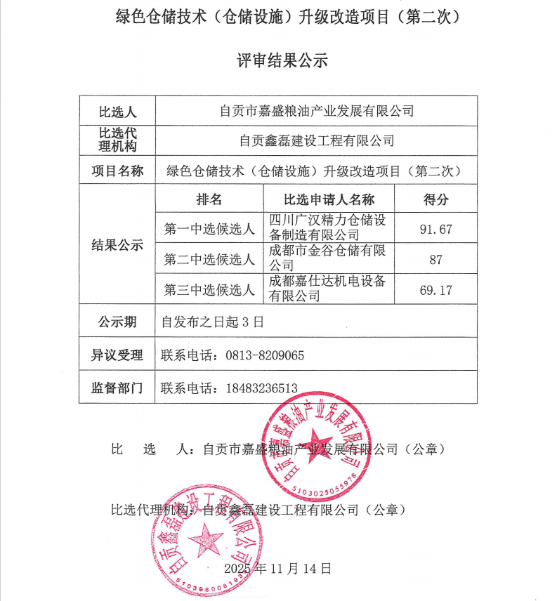 绿色仓储技术(仓储设施)升级改造项目(第二次)评审结果公示