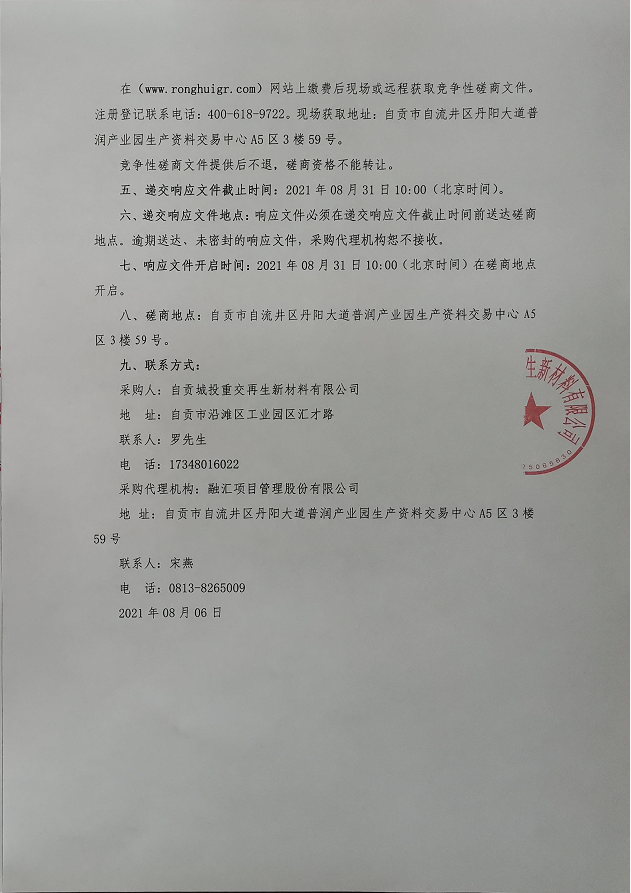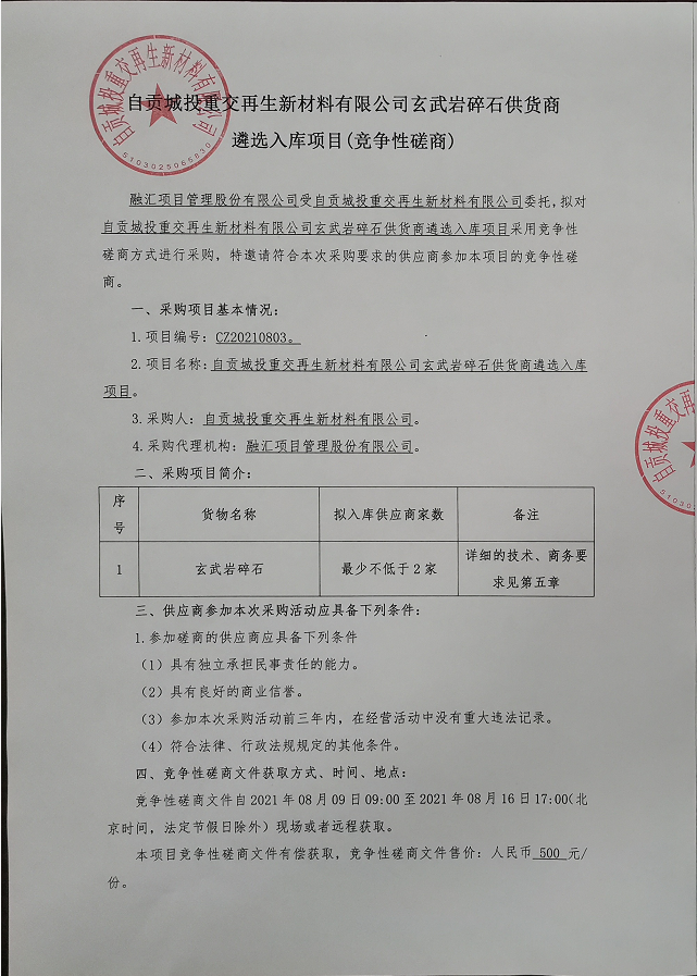 自贡城投重交再生新材料有限公司玄武岩碎石供货商遴选入库项目(竞争性磋商)