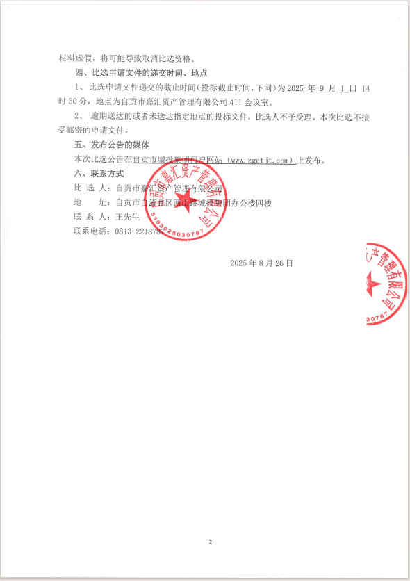 自贡市城投医疗健康产业发展有限公司资产公开竞租公告